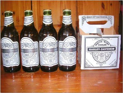 Harley-Davidson thus realized that they needed to start selling goods that would appeal to the progressive biker lifestyle. And when it came time to create an alcoholic beverage for their customers, it would be insulting to go with some fiery mix of grain alcohol and used motor oil. No, what 1980s bikers wanted, they figured, was the dewy crisp refreshment of a wine cooler called Scooter Juice. That wouldn’t get any self-respecting Hell’s Angel beaten to death, right?