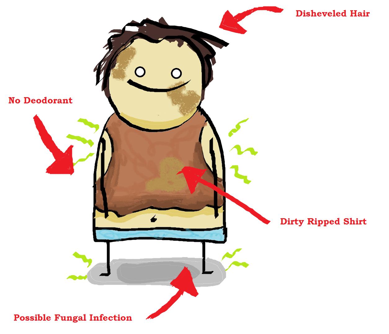 Your odor should not be so pungent that I can identify which department of the store you are in. Your clothing should not be so ripped that I have to revisit the no shirt no shoes no service policy. In general, don’t be so dirty that I feel the need to rub hand sanitizer up to my elbows in order to avoid catching some strange disease. Being dirty in any place where there is food or disease can easily be spread is unacceptable.
