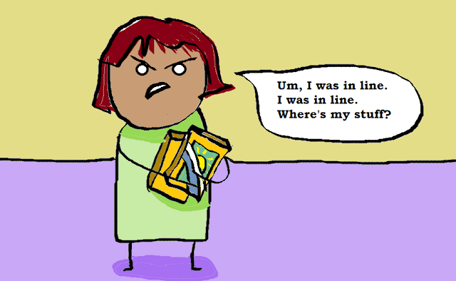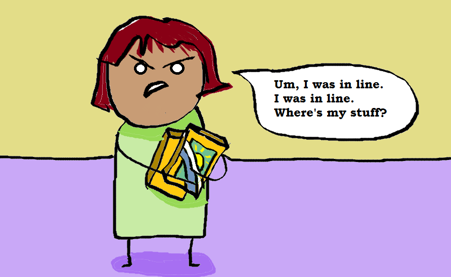 Well I set your stuff to the side. Because you took too long. Because you WEREN’T, in line. And how do I know that you’re even coming back? If you want your cashier to hate you, expect that we’re totally fine with you holding up the line and us taking the blame for it.